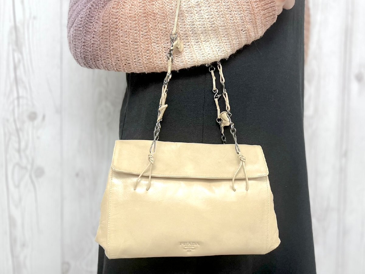 - 美品 PRADA プラダ ハンドバッグ ショルダーバッグ バッグ レザー ベージュ 91846Y