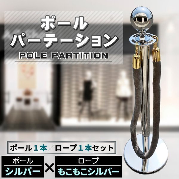 - ポールパーテーション 1本 セット シルバーポール シルバーロープ もこもこ ガイドポール ポール スタンド パーテーション