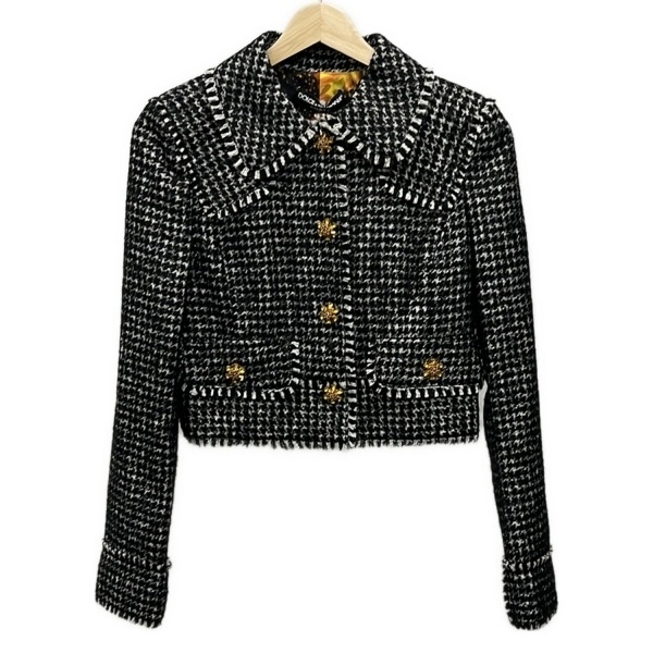 > ドルチェアンドガッバーナ DOLCE&GABBANA サイズ38 S - 黒×白 レディース 長袖/千鳥格子柄/秋/冬 美品 ジャケット
