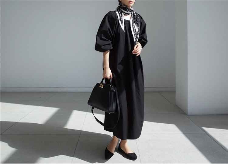 - 春 夏 ゆったり ラウンドネック 新品 ワンピース ロング丈 L イエロー