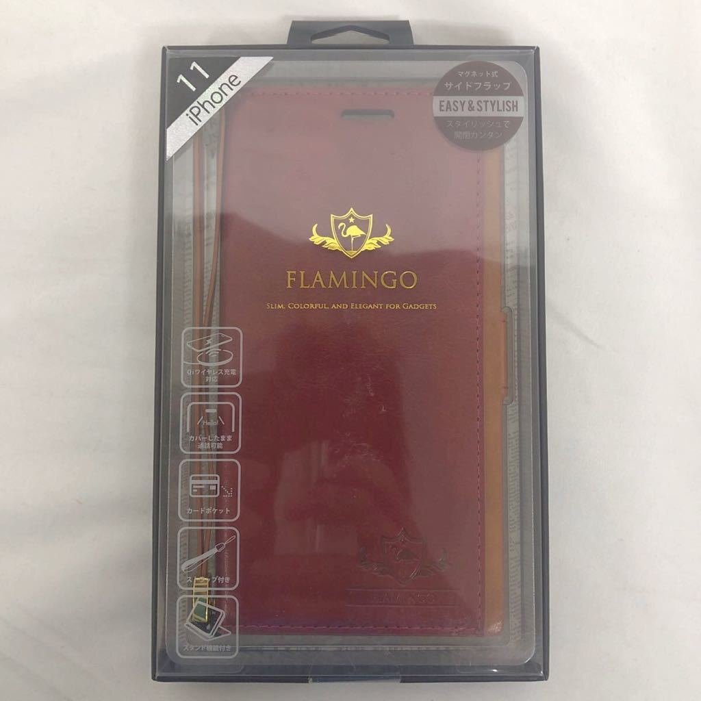 > 未使用 手帳ケース iPhone 11 スマホケース オレンジ×レッド 【中古】