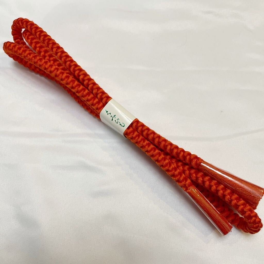 - 未使用 帯締 和装小物 着物 帯紐 和服 帯締め 帯じめ 帯ひも 絹 100% オレンジ 6 組紐 【中古】