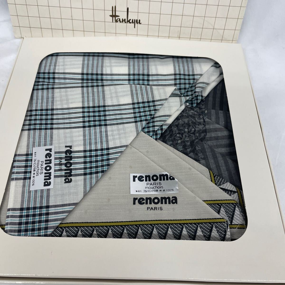 - 未使用 レノマ メンズ ハンカチセット 3枚 チェック renoma 紳士用 【中古】