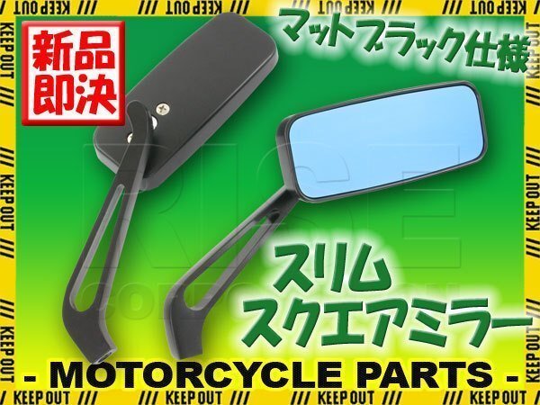 スリムスクエアミラー マットブラック 取り付けネジ10mm/8mm ブルーミラー 左右セット つや消し黒 YB-1 ギア マジェスティ GX250
