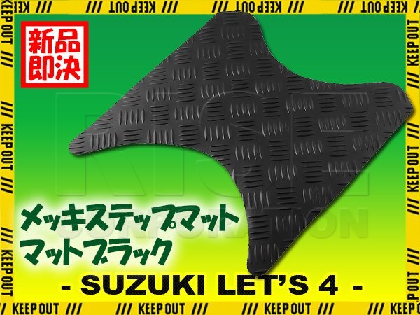 > 縞鋼板調 ステップマット スズキ レッツ4 G/バスケット/パレット CA41A CA43A CA45A CA46A マットブラック バイク ゴムマット カスタム