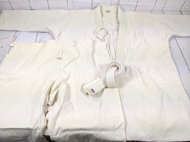 - 【10yt062】格闘技 柔道着上下セット+帯付き ミツボシ 上衣+ズボン(ベージュ サイズ3)◆中学校 高校 体育授業 部活動に♪