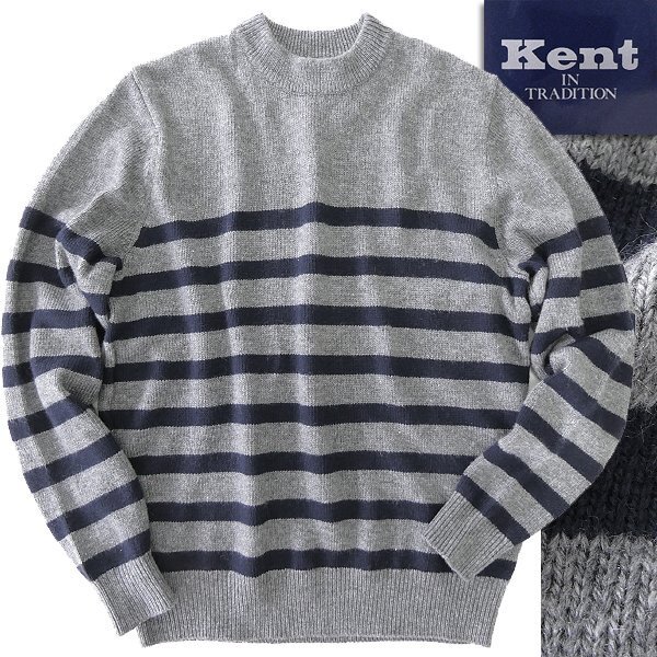 - 新品 ケントイントラディション ウール混 ウォッシャブル パネルボーダー ニット LL 灰 紺 【I44484】 Kent IN TRADITION 秋冬 メンズ