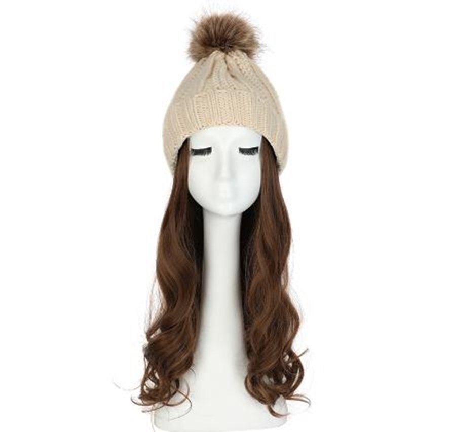 - ウィッグ付きニット帽 ニット帽/ベージュ ウィッグカラー/L ロングヘアー イメチェン 髪色チェンジ コスプレ