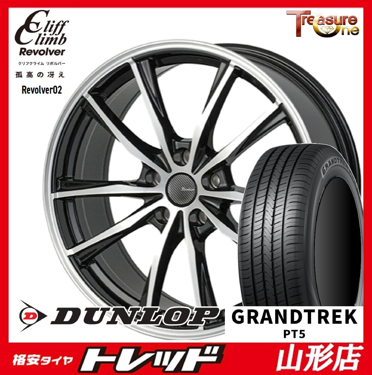 - 山形店 新品 タイヤアルミセット クリフクライム リボルバー02 19インチ 8.0j 5H114.3 +38 BP DUNLOP グラントレック PT5 235/55R19 2024年