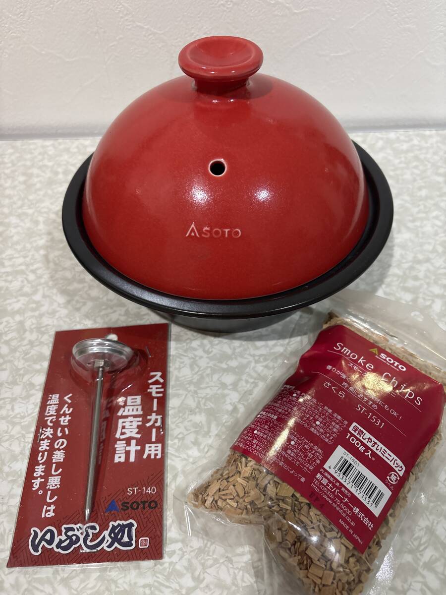 - 未使用 SOTO スモークポット 燻製鍋 スモーカー ソト 燻製 温度計 スモークチップ セット まとめ売り アウトドア キャンプ