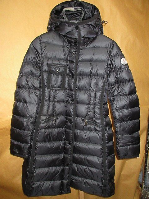 - モンクレール MONCLER HERMINE ロゴ ワッペン フード ダウン コート 黒 0 美品