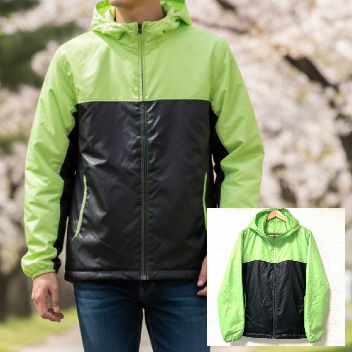 - 嬉しいリバーシブル!【UNIQLO】ユニクロ 中綿 パーカー 2WAY ジャケット ブルゾン フルジップ グリーン×ブラック メンズ L/Y17356UU