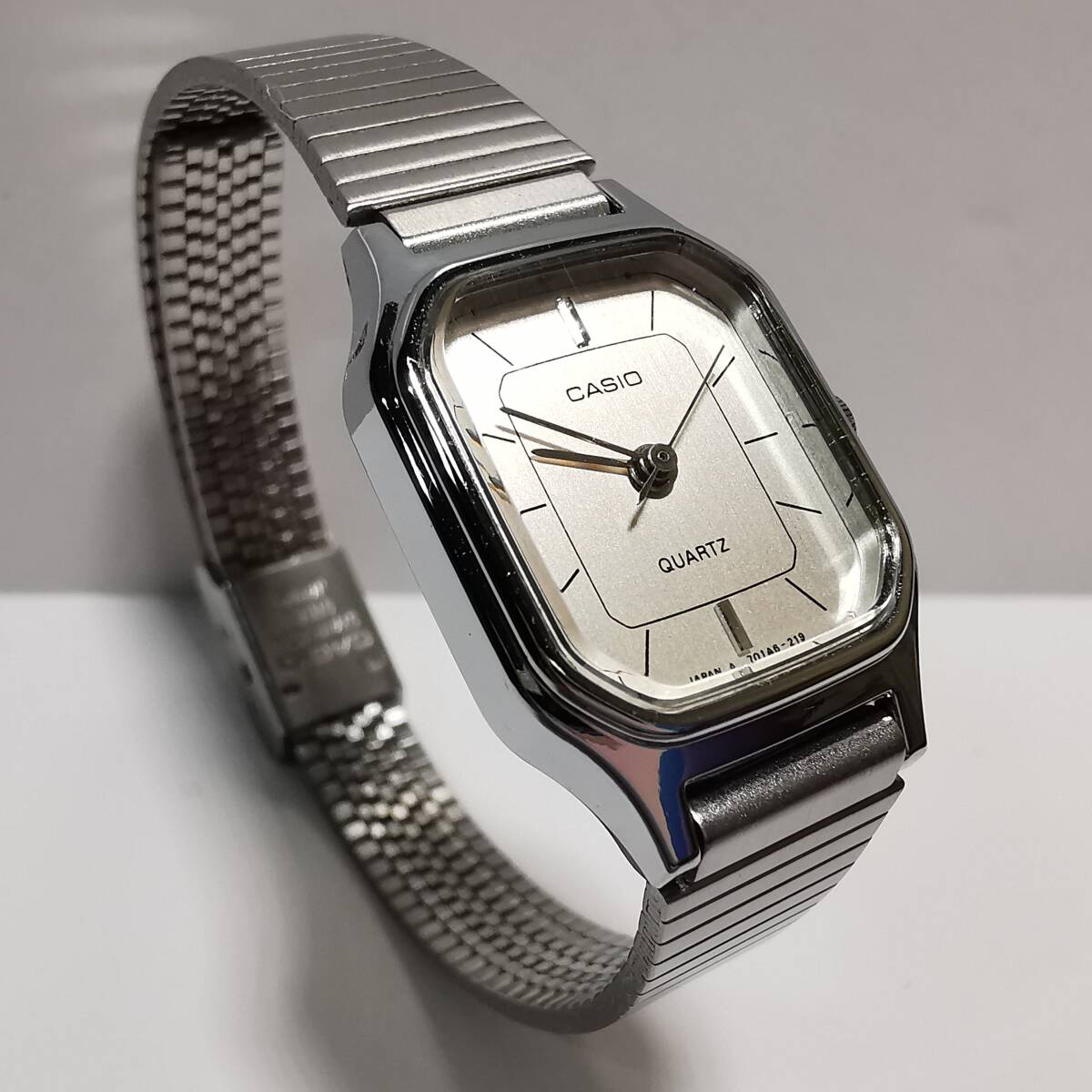> ★カシオ CASIO LQ-302[319]日本製★ シルバー文字盤/スクエア/クオーツ3針 純正SSブレス(B-601L・非伸縮) 現状/電池切れ レディース