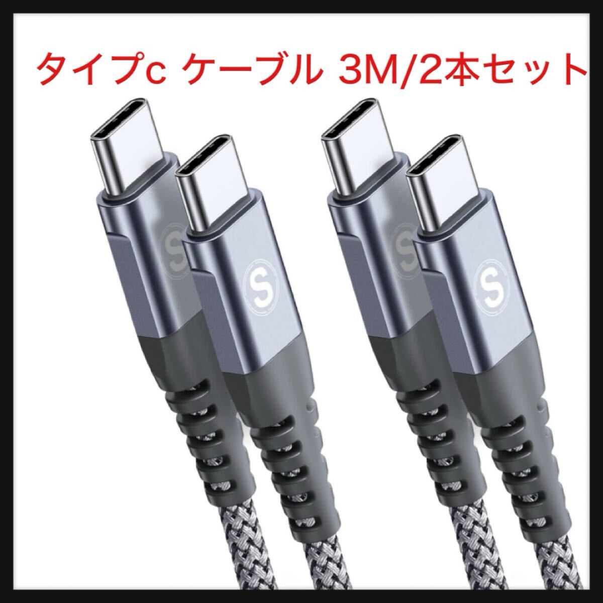 > 【開封のみ】sweguard★タイプc ケーブル 3M/2本セットPD対応 60W急速充電(USB C&USB C ケーブル) iPhone17 16 15 充電器 Type-c