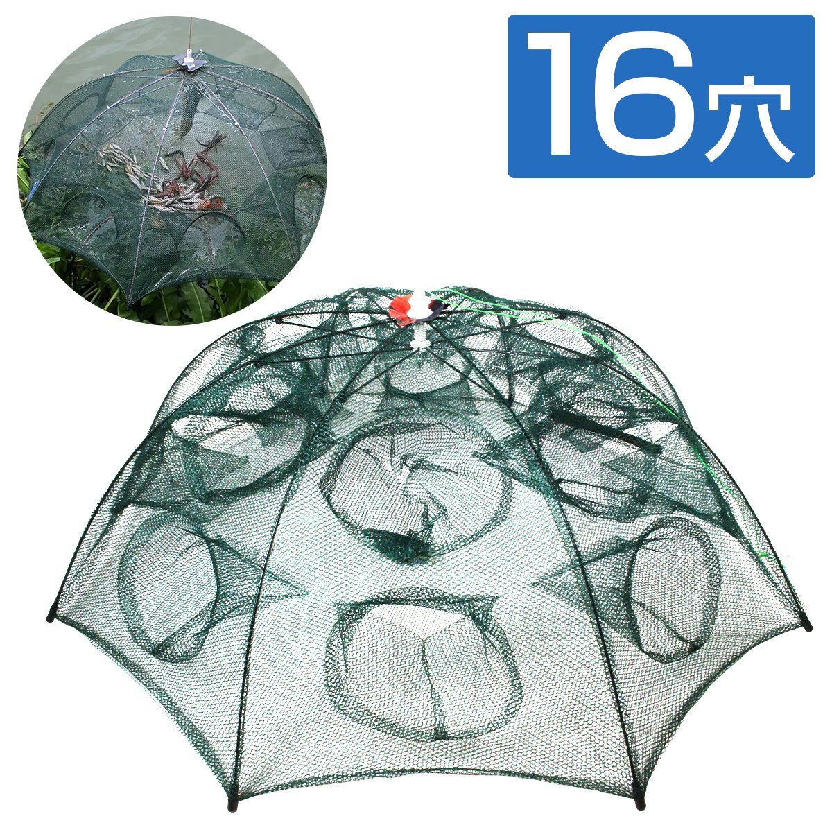 - (LLsiz) 16穴 仕掛け網 タコ ウナギ アナゴ エビ カニ 狙い 捕獲網 手網 角網 コンパクト収納 折り畳み式 穴子 魚網 漁具