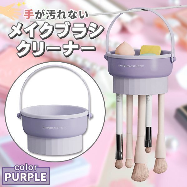 - メイクブラシ メイクブラシクリーナー メイクブラシスタンド メイクブラシ洗浄 乾燥スタンド 化粧筆収納 パープル