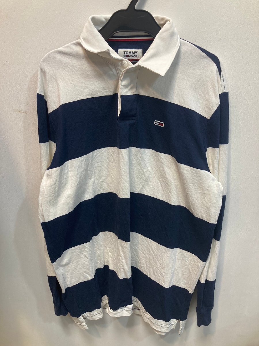 ◆TommyJeans トミージーンズ  ラガーシャツ Mサイズ ボーダー柄 中古◆11772