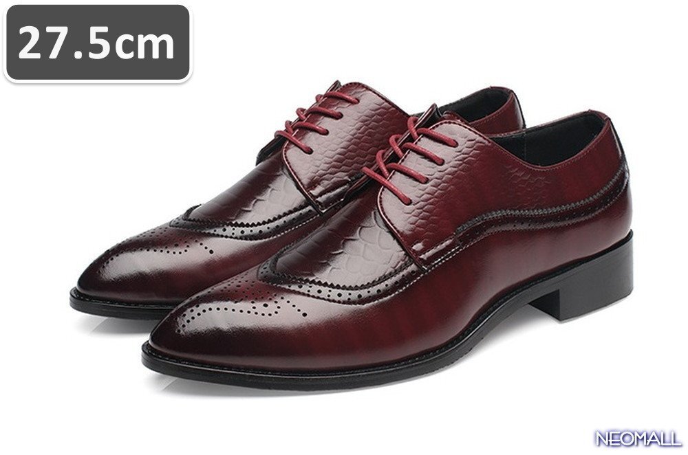 > 売れ筋商品 ☆ メンズ ビジネス レザー シューズ レッド サイズ 27.5cm 革靴 靴 カジュアル 屈曲性 通勤 軽量 【423】