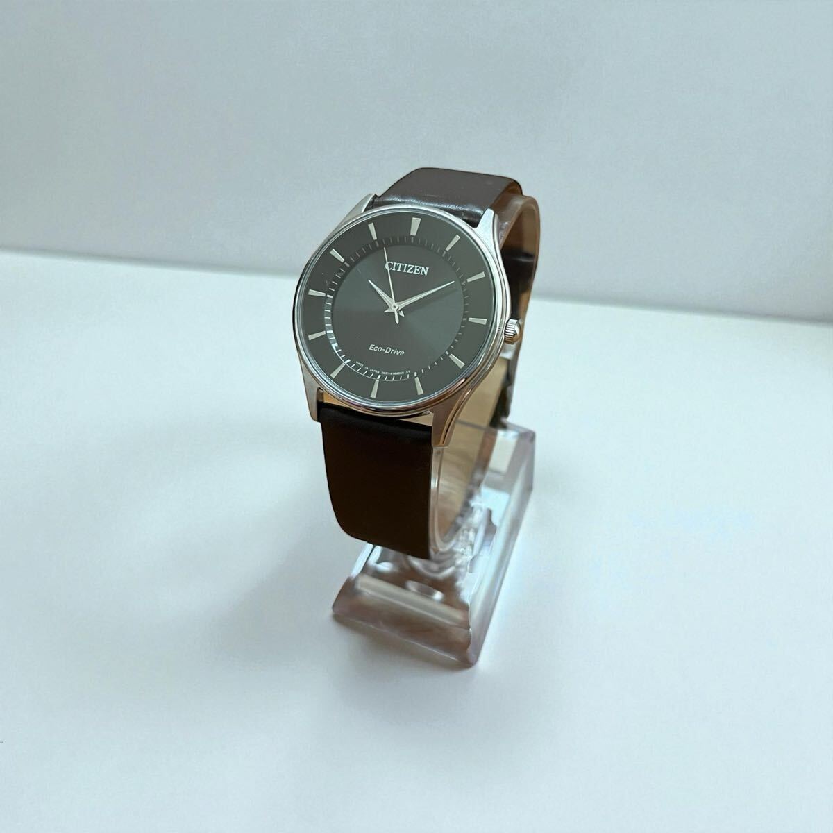 > 38 ☆稼働品☆ CITIZEN シチズン 腕時計 メンズ クォーツ式 シルバー ブラック文字盤 ラウンド 3針 エコドライブ E031-S103720