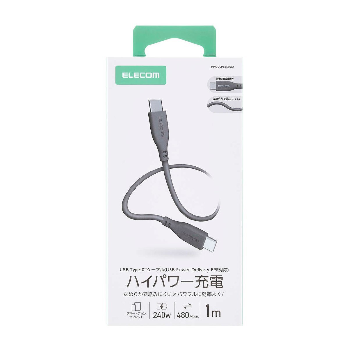 > USB2.0ケーブル [C-C] 1.0m 最大240W(48V/5A)充電 やわらかくなめらかな手触りのシリコン素材を採用: MPA-CCPESS10GY
