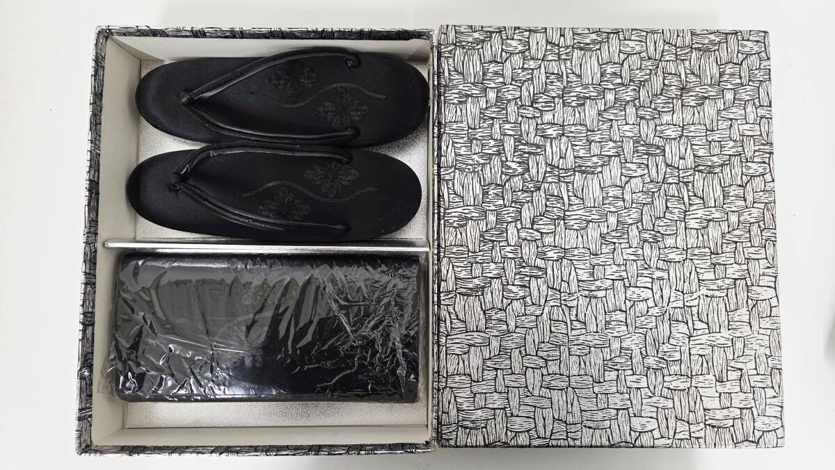 > E-1225 【同梱不可】980円~ 現状品 喪服 草履 バッグ セット 和装小物 草履23cm クラッチバッグ ブラック 箱付き