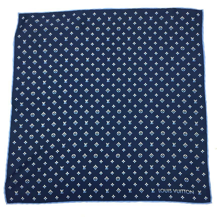 - 全国送料無料 LOUIS VUITTON ルイヴィトン モノグラム スカーフ M79555 ネイビー ポケットチーフ シルク 未使用 aq11921