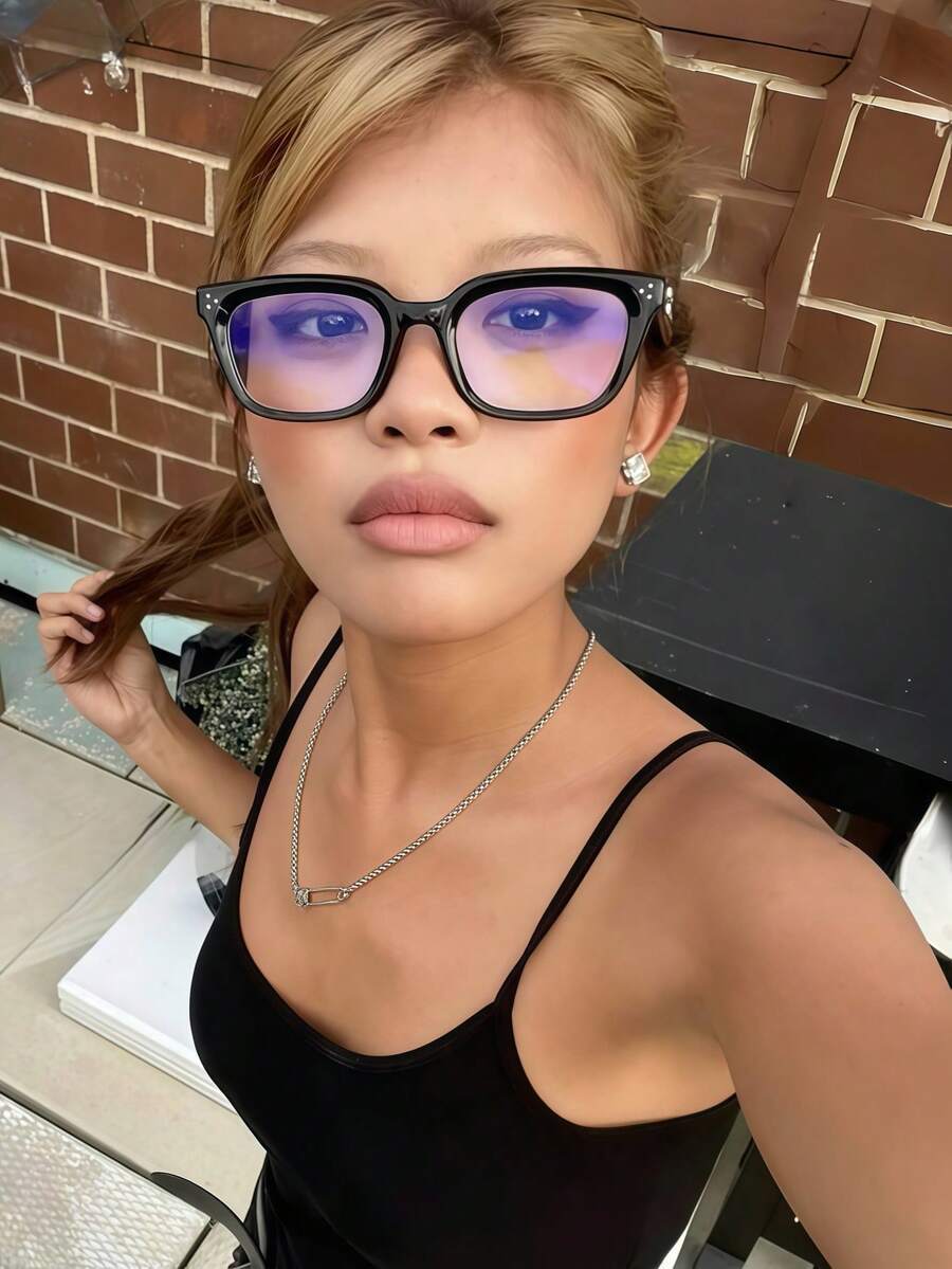 - アクセサリー レディース アイアクセサリー セット 1個 スクエアフレームメガネ クリアレンズ 老眼鏡、ゲーミング、、コンピュータ
