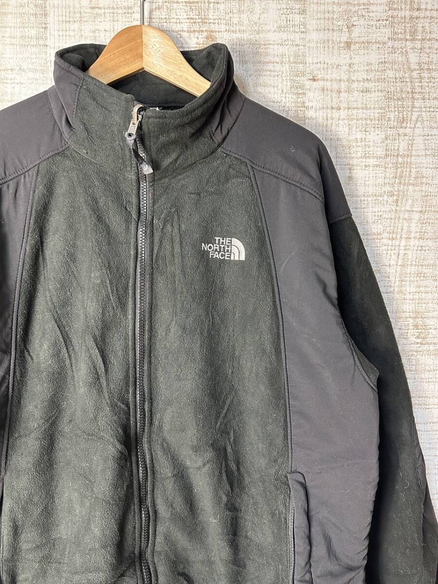 > ☆ビッグサイズ US古着 THE NORTH FACE ノースフェイス デナリフリースジャケット ナイロン×フリース ロゴ刺繍 ブラック黒【XL】 ◆5398◆