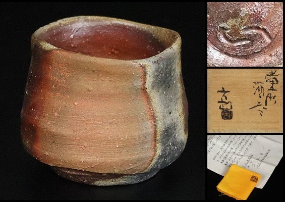 - 【 中村六郎 】最上位作 備前酒呑 師 金重陶陽 共箱 保証 15586b