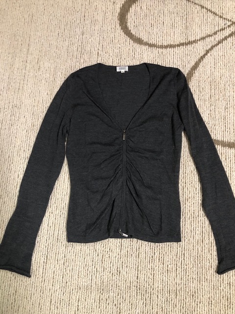- FOXEY☆フォクシー☆ダブルジッパーギャザーカーディガン☆40☆チャコールグレー