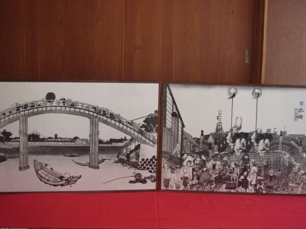 - ★ざ*きもの★ びょうぶ 小びょうぶ パーティション 浮世絵 186cm×63cm 希少品!