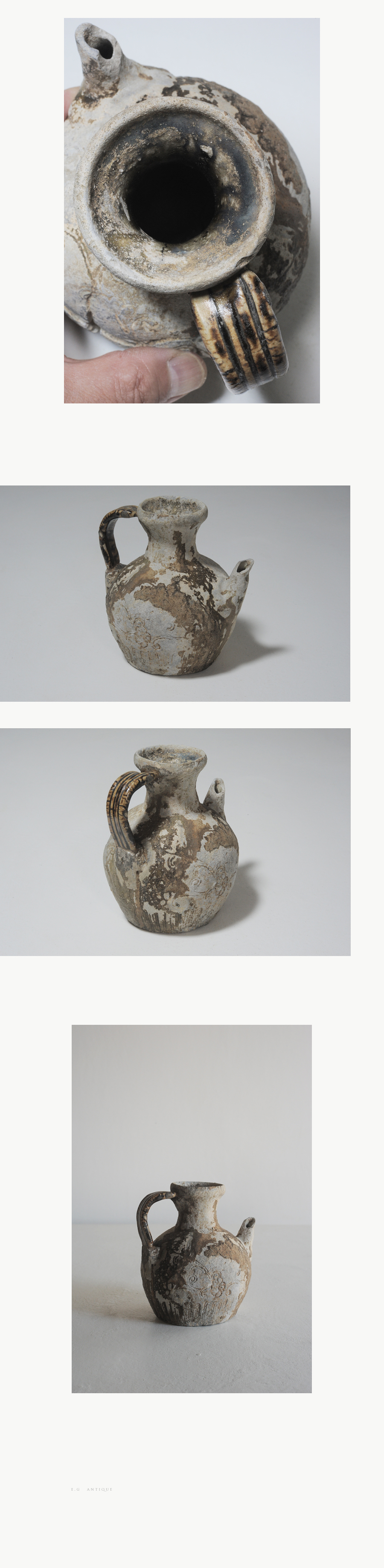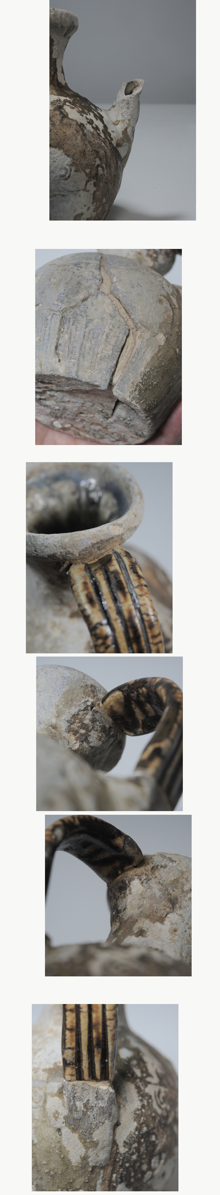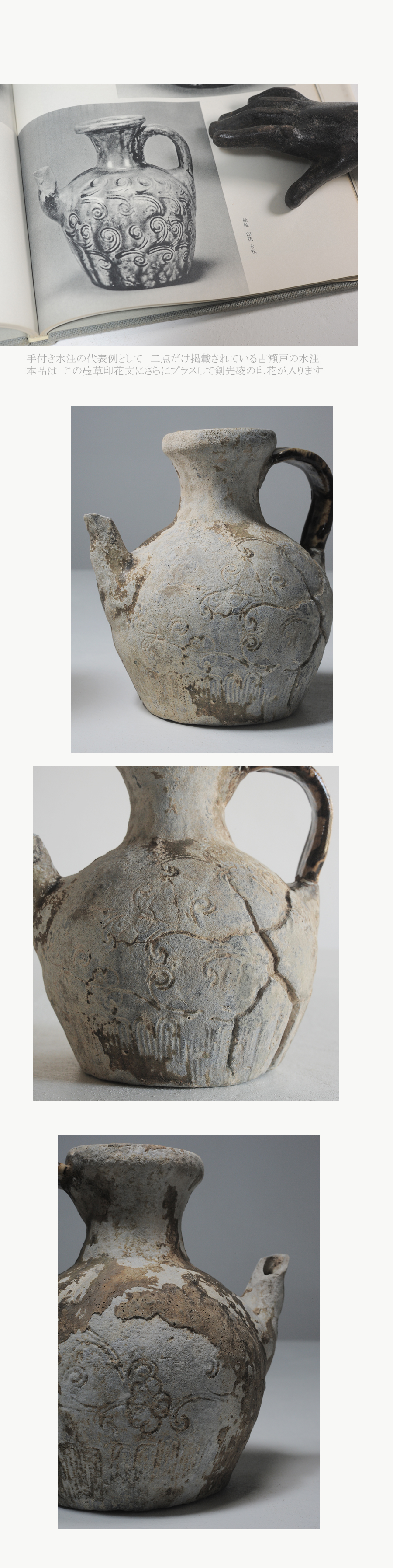 - 古瀬戸 鉄釉印花文手付水注 水瓶 南北朝時代14世紀 呼び継ぎ 仏教美術