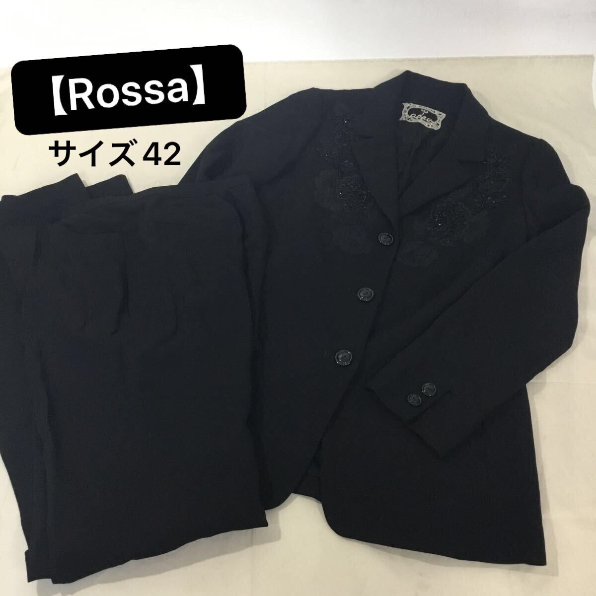 - 【Rossa】未使用 インポートロッサ ウール100% ジャケット パンツ セットアップ サイズ42 ブラック フォーマル 黒 ビジュー レディース