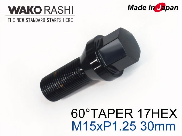 - 国産★和広 ラグボルト 60°テーパー座 首下30mm 17HEX M15xP1.25 ブラック/1本