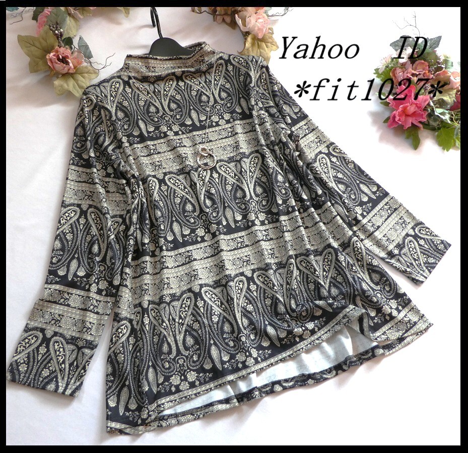 - LL~3L【新品】柔らかなスムースタッチ素材☆ きれいなAライン♪ペーズリー柄★ボトルネックチュニック・モノトーン◆fit1027◆