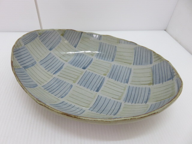 - 【中古未使用品】 天草 丸尾焼 28cm カレー皿 市松模様 〇YR-10267〇