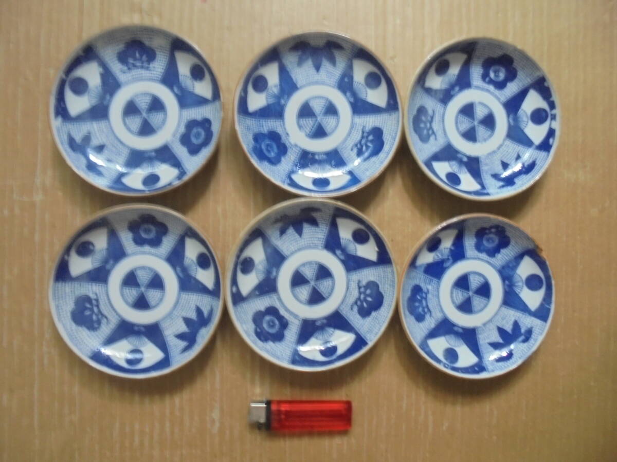 - 日の丸小皿 6枚 日章旗 松竹梅紋 レトロ 7554 陶器 時代陶器等 京都雲屋