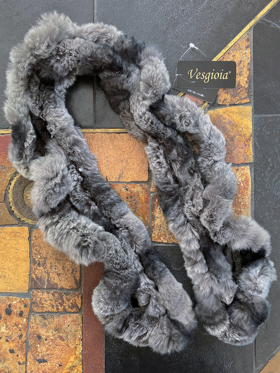 - 小売価格9900+税◆Vesgioia 毛皮 レッキス マフラー グレー ティペット◆ベスジョーヤ 灰色 リアルファー/うさぎ ラビット シンプル ファー
