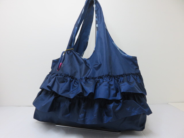 - 【中古品】 TUNIC チュニック フリルトートバッグ エコバッグ 迷彩×ブルー 〇YR-12536〇