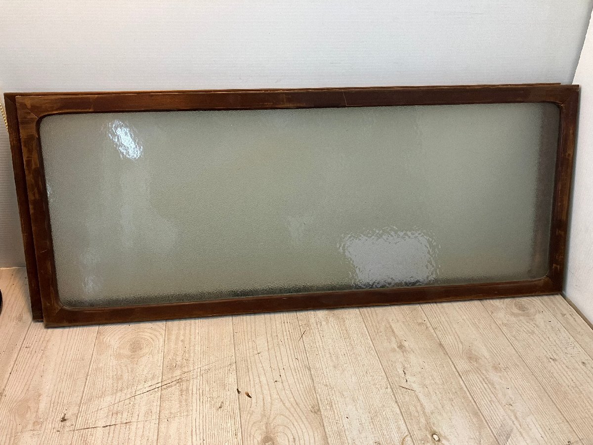 > ma 【H34,5cm×W85cm】×2枚◆可愛いガラスの小振りな古い木枠戸◆ ガラス戸 小窓 レトロ アンティーク ゆうパック
