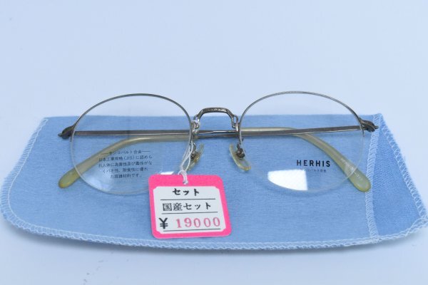 > k5933 / 未使用 眼鏡 めがね HERHIS -313 52□19-142 W サンコバルト合金 メタルフレーム メタルゴールド 彫刻 度入り タグ 袋付 現状品