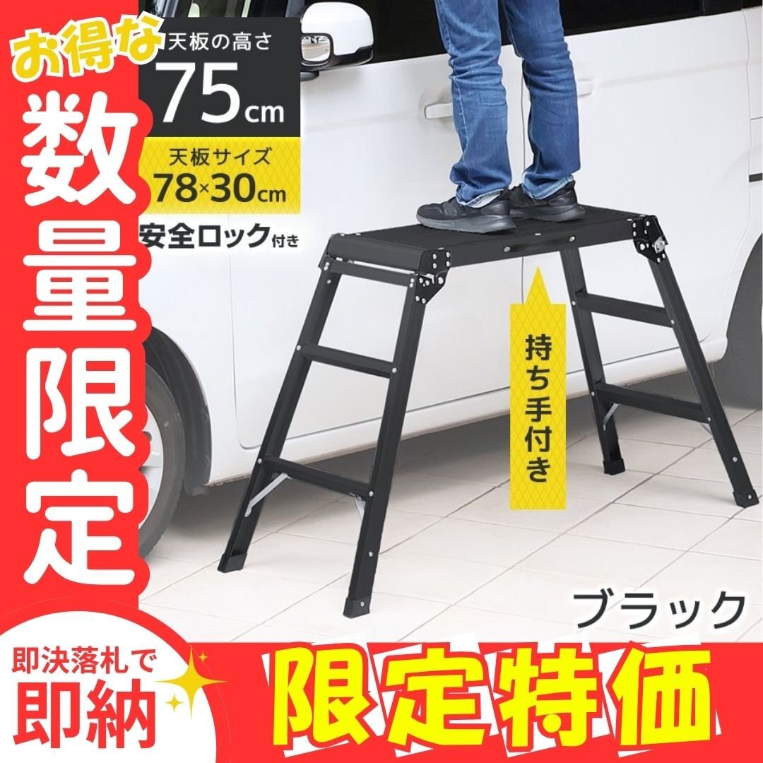 > 限定セール【ブラック】新品 折りたたみ アルミ踏み台 高さ75cm 脚立 耐荷重150kg ワンタッチ コンパクト 足場 洗車台 ステップ台 作業台
