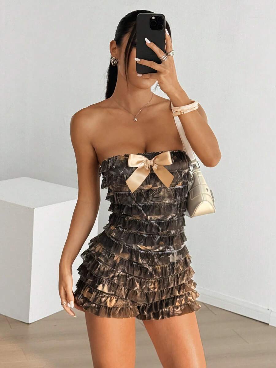 - ボディスーツ レースアップ レイヤード リボン タイト ロンパース レディース 夏用