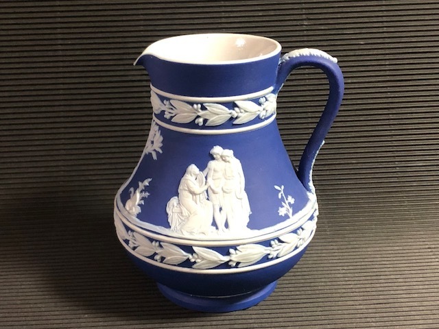 - ◎1930年代 ウェッジウッド ロイヤルブルーを被せた白のジャスパー 水差し ピッチャー◎W