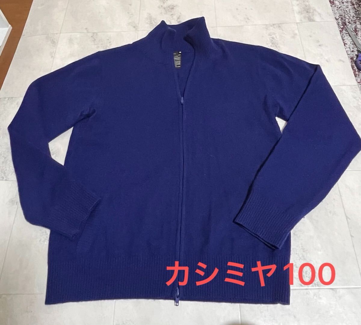 - ディーヒム d/him カシミヤ100% ジップアップカーディガン ニット セーター 48サイズ(L-LL)紺 ネイビー