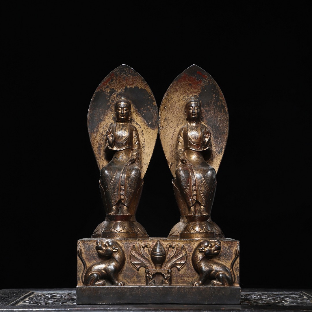 - 旧蔵 古銅彫 泥金 北魏佛 佛像 古擺件 古置物 中国古玩 骨董品 時代物 稀少唐物