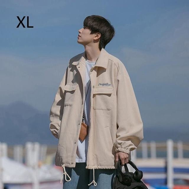 - メンズ ジャンパー シャツ 長袖 トップス アウター 秋冬アウタ おしゃれ 登山服 アウトドア 多ポケット 多機能 XLサイズ 米色