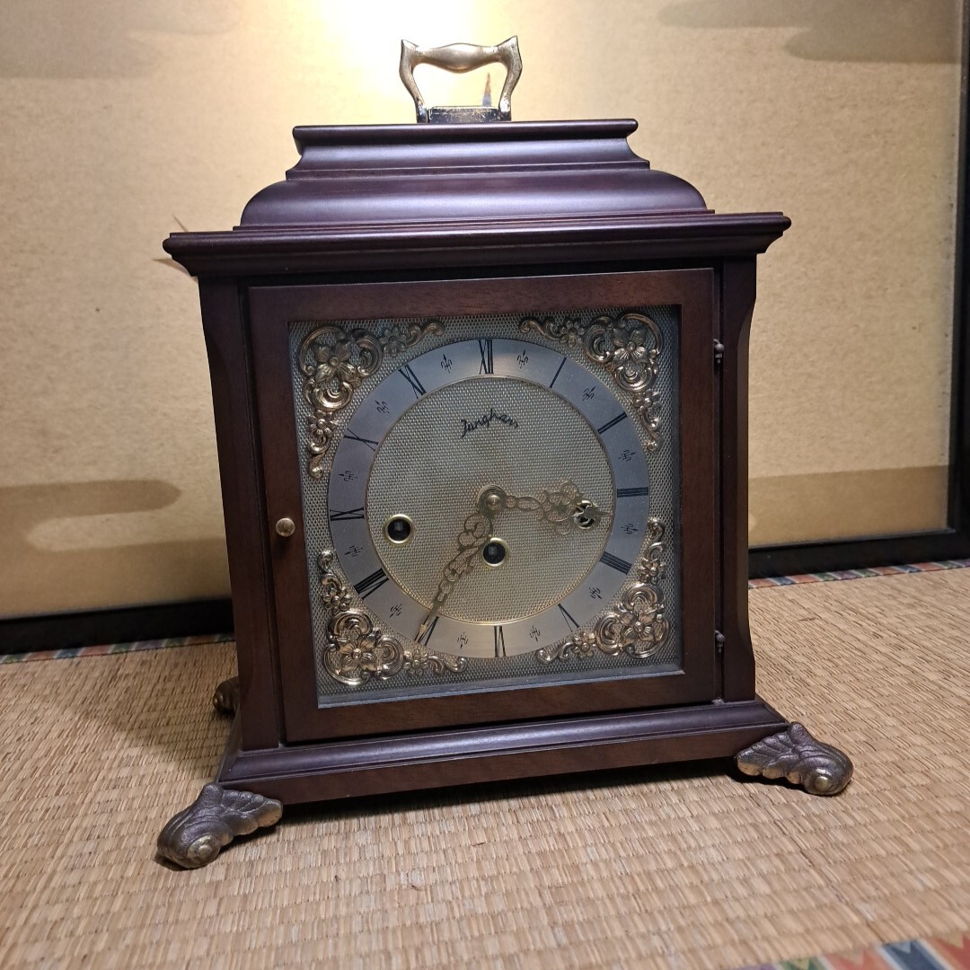 - JUNGHANS ユンハンス 手巻き 機械式 置時計 木製 アンティーク ゼンマイ 置き時計 ドイツ 稼働品
