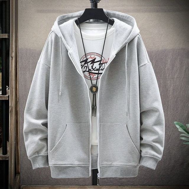- メンズパーカー ジップアップパーカー 大きいサイズ トップス パーカー スウェット アウター 長袖 薄手 無地 春秋服 遮熱 グレー 2XL