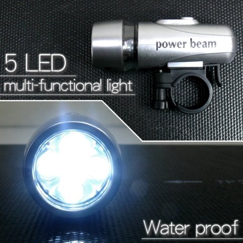 - 【vaps_6】取付簡単 長寿命 5LED 自転車 フロントライト ヘッドライト (シルバー) 送込